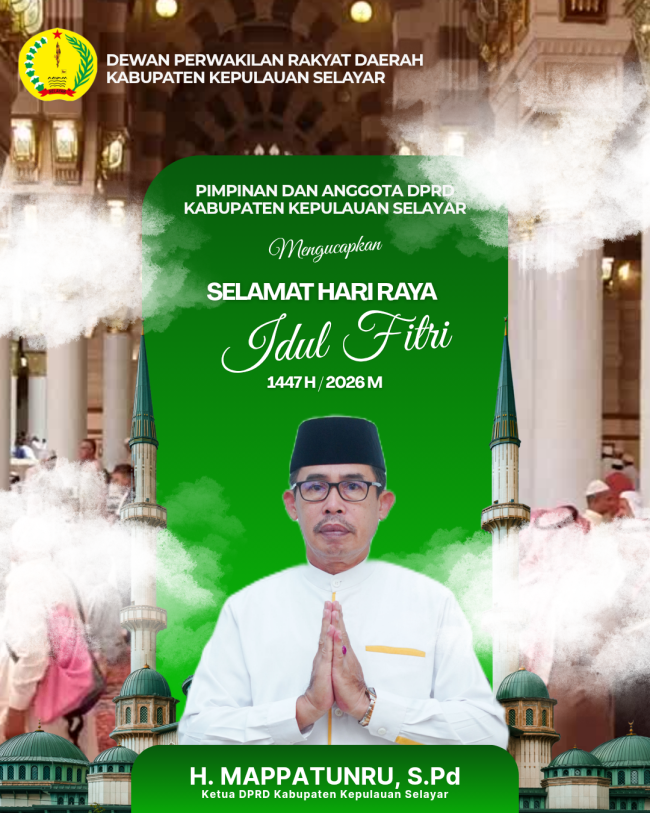 BUKABACA.co.id, SELAYAR – Pimpinan dan Anggota DPRD Kabupaten Kepulauan Selayar mengucapkan Selamat Hari Raya Idulfitri 1447 Hijriah/2026 Masehi.