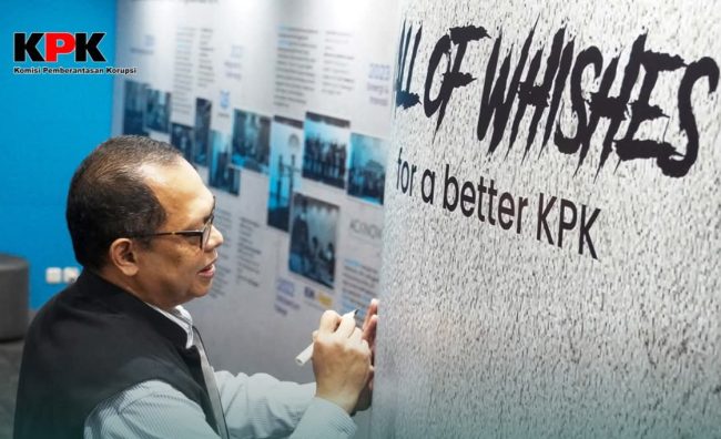 “Jangan bergantung pada pimpinan, sebab KPK adalah kita semua. Tantangan ke depan semakin berat, jadi tegakkan integritas agar KPK tetap eksis,” tegasnya.