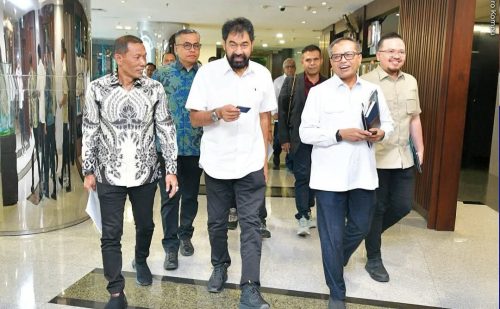 Jakarta – Menteri Pekerjaan Umum (PU), Dody Hanggodo, menerima kunjungan Gubernur Aceh, Muzakir Manaf, di Kantor Kementerian PU, Kamis (10/4). Pertemuan tersebut membahas sejumlah inisiasi pembangunan di Provinsi Aceh, termasuk peningkatan koordinasi dan kolaborasi dalam percepatan pelaksanaan program swasembada pangan melalui dukungan infrastruktur irigasi.